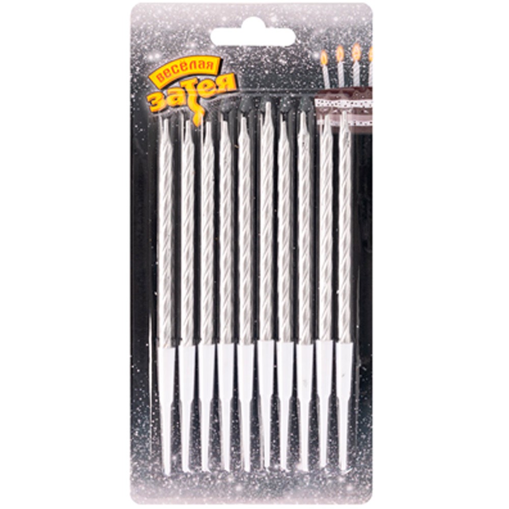 Свечи для торта с подст. Серебро 10см 10шт 1502-6253