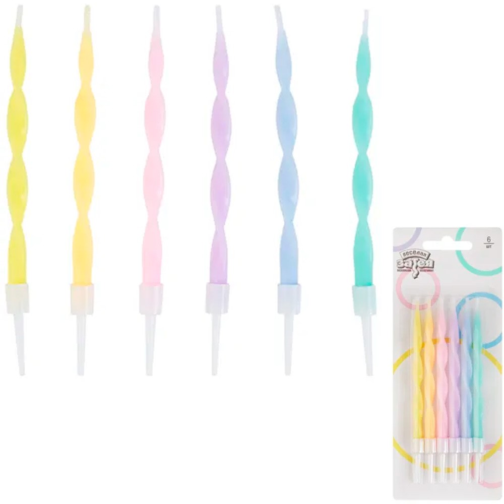 Свечи для торта Серпантин Пастель 10см 6шт