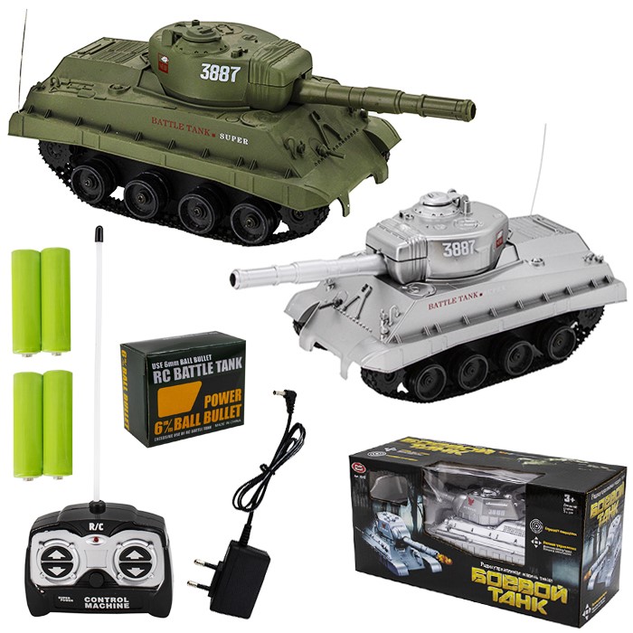Комплектация: танк - 1 шт., аккумулятор - 1 шт., пульт ДУ - 1 шт., зарядное устройство - 1 шт., батарейка - 4 шт., пульки