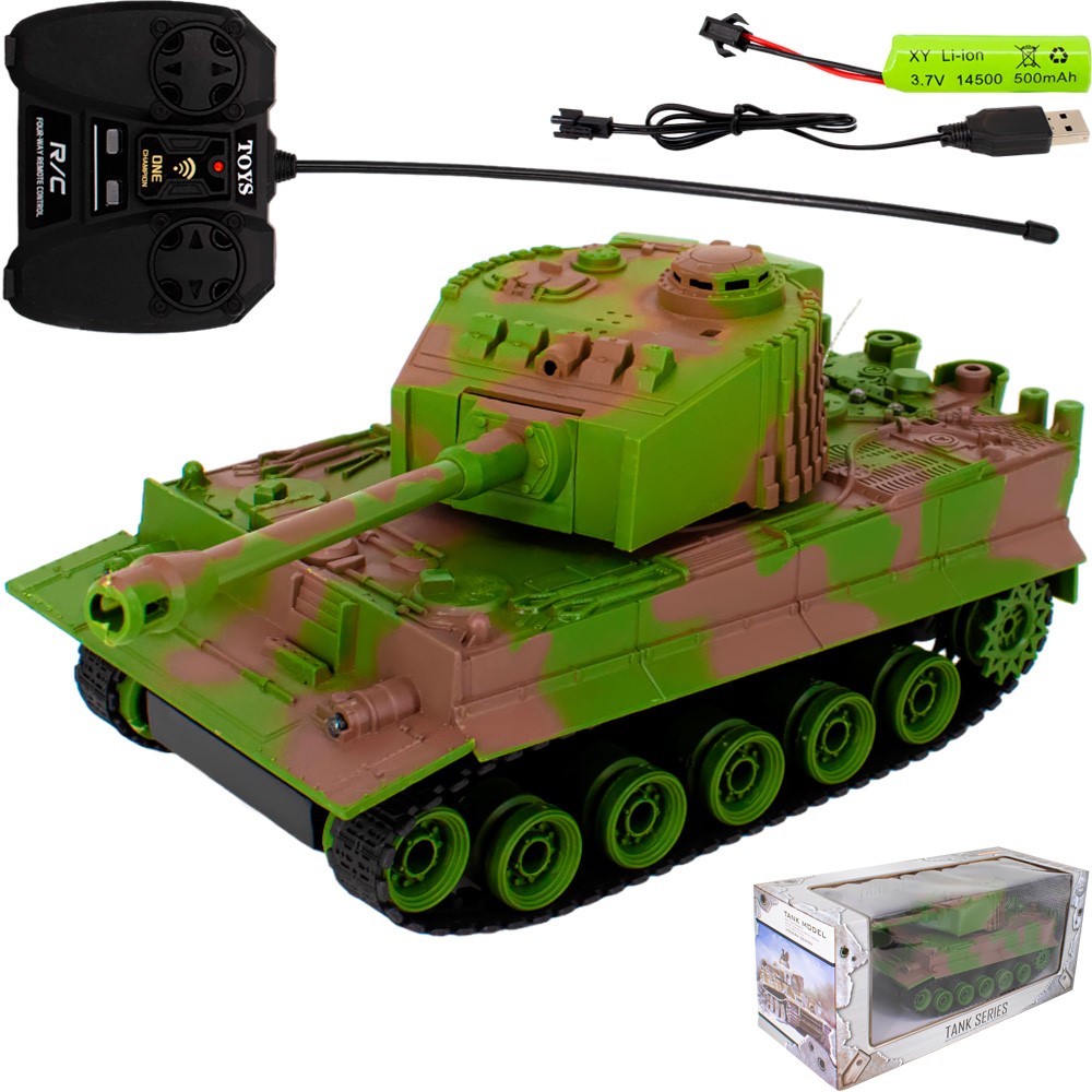 Комплектация: танк- 1 шт, пульт - 1 шт, аккумулятор - 1 шт, кабель для зарядки - 1 шт
