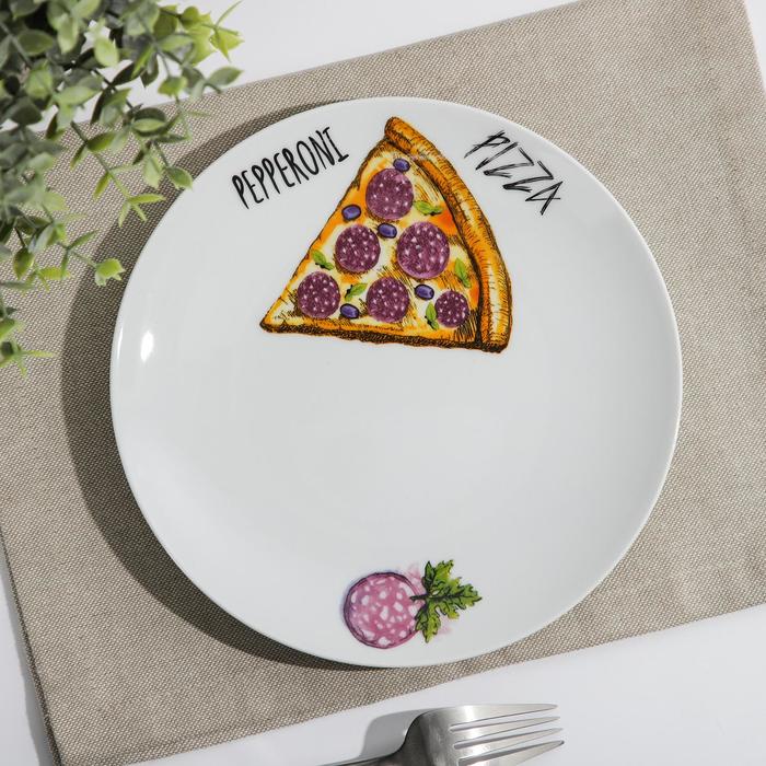 Тарелка Добрушский завод «Пицца», d=20 см, фарфор, рисунок МИКС