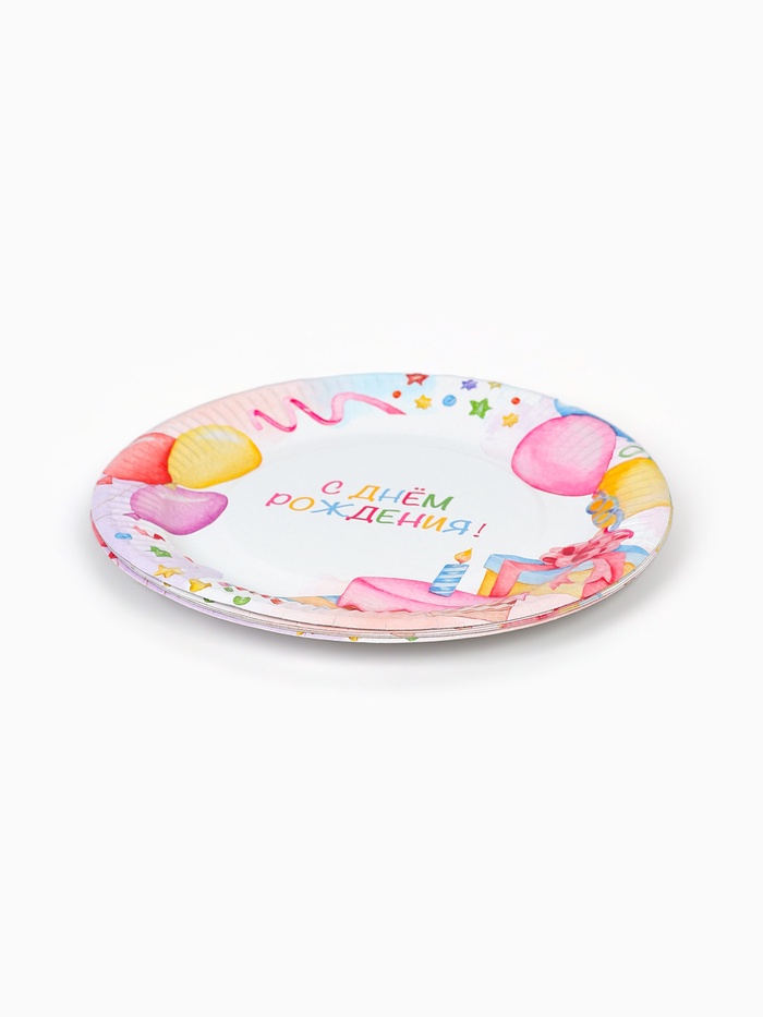 Тарелка одноразовая бумажная «День Рождения», 23 см (комплект 12 шт)