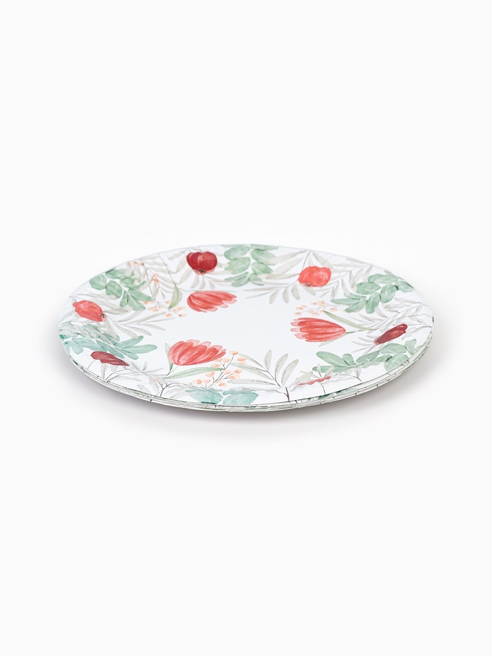 Тарелка одноразовая бумажная «Красные цветы», 23 см (комплект 12 шт)