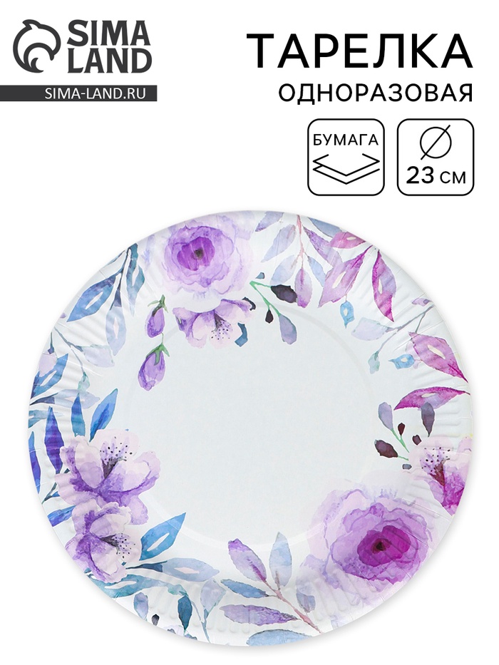 Тарелка одноразовая бумажная «Сиреневые розы», 23 см (комплект 12 шт)