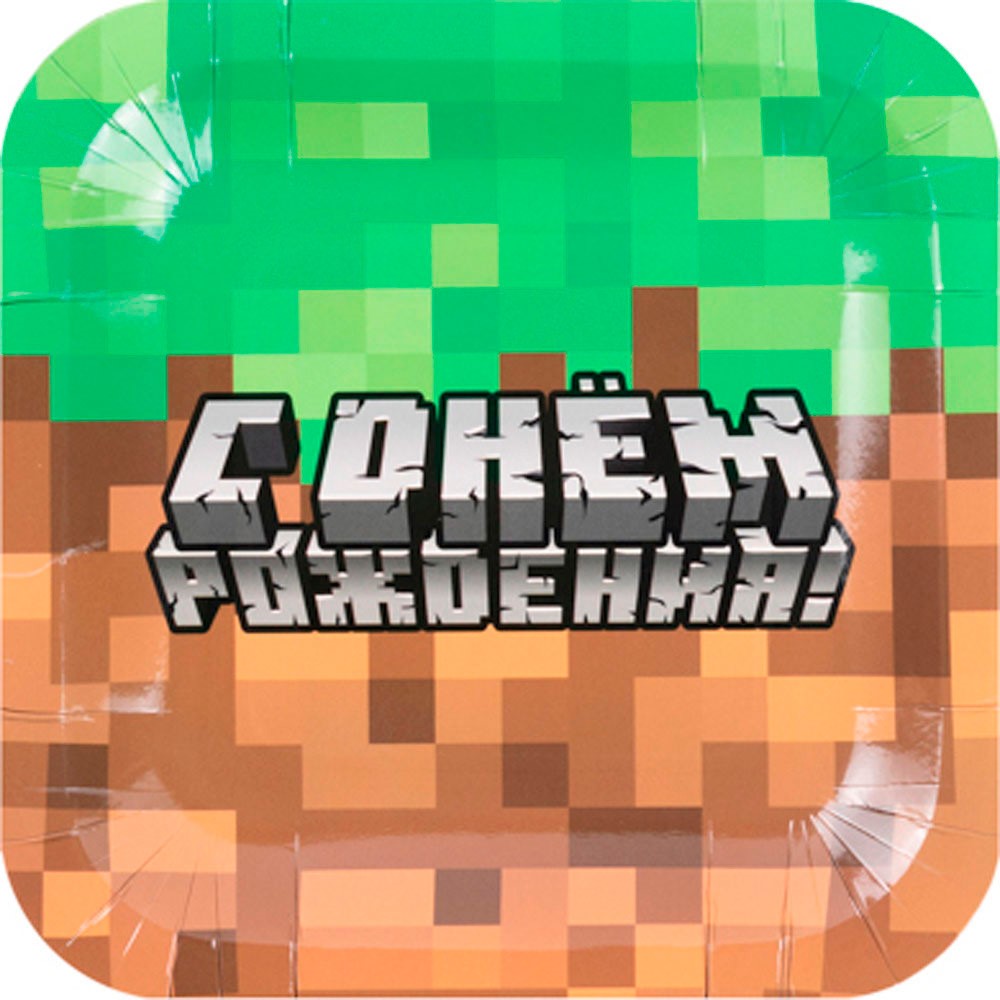 Тарелка С ДР Пиксели 17см квад 6шт 1502-6173