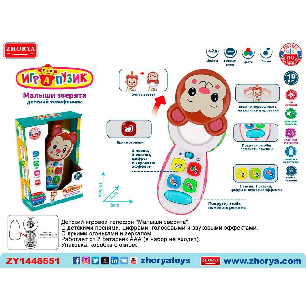 Телефон ZYA-A3208-3 Малыши зверята, русск. озвуч., в кор.