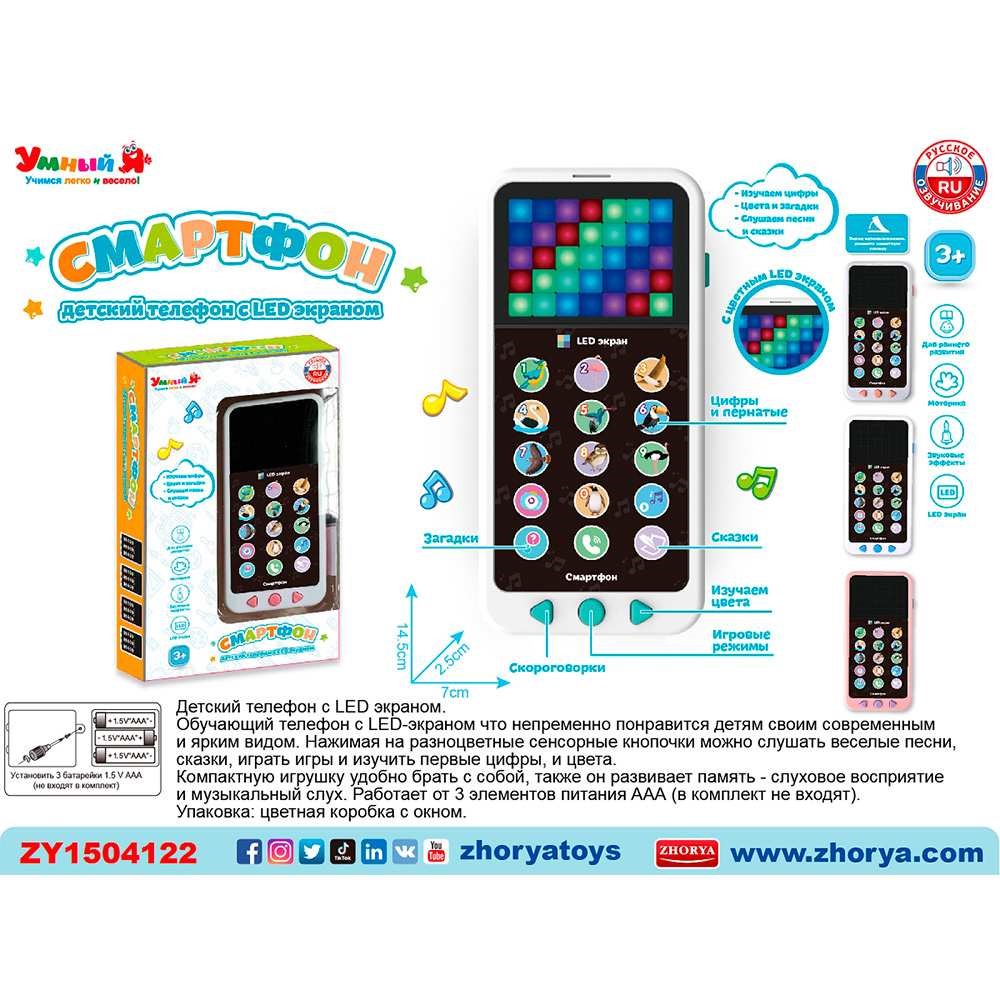 Телефон ZYE-E0596 Умный Я с LED экраном, русск. озвуч., на батарейках, в кор.