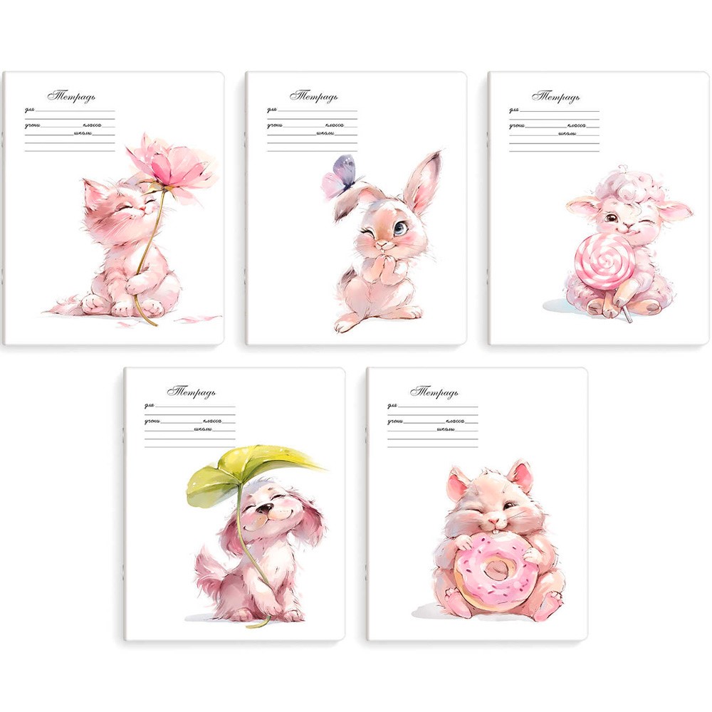 Тетрадь 12 л. клетка Акварельные зверушки 70895