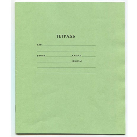 • Классическая зеденая тетрадь содержит 12 листов и очерченные поля.