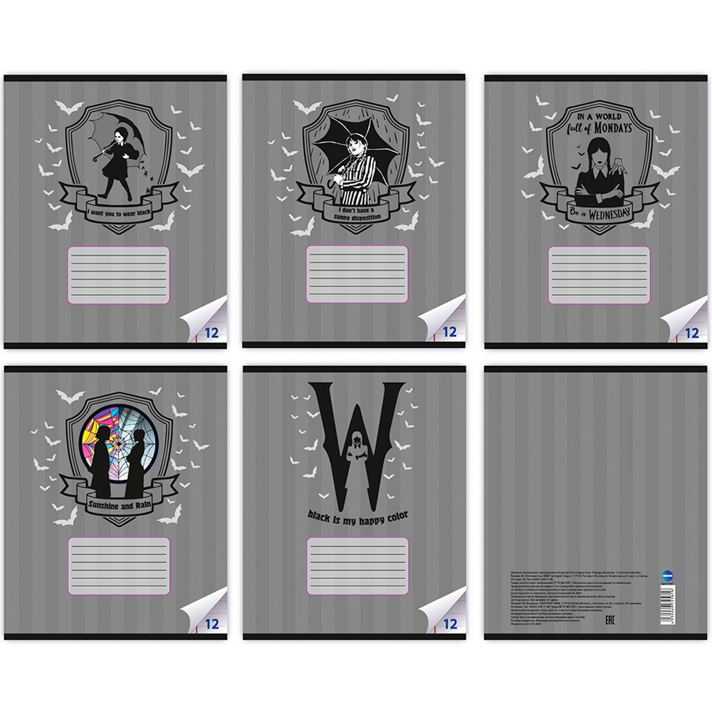 Тетрадь 12 л. линия Вэнсдэй 72581