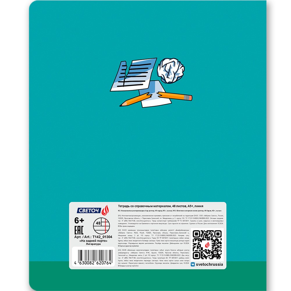 Тетрадь 48 л. линия предметная со справочным материалом "На задней парте" Литература Т142 01304