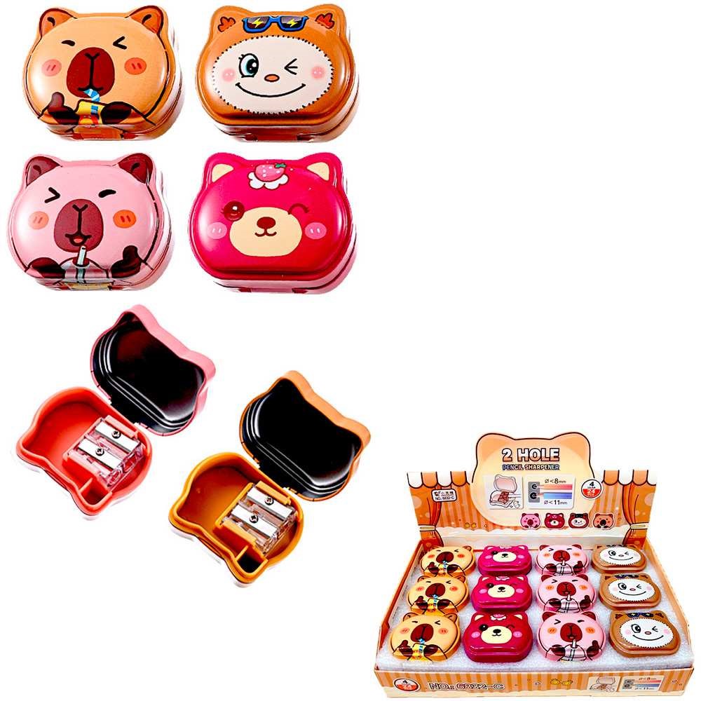 Точилка металлическая Животные 2 отверстия с контейнером ассорти M-3045