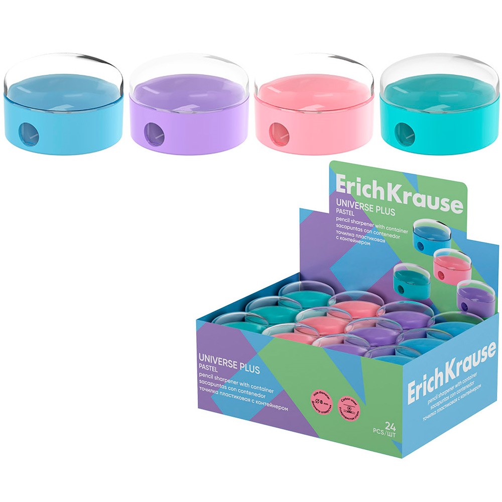 Точилка пластик Universe Plus, Pastel, с контейнером ассорти 60013 ErichKrause