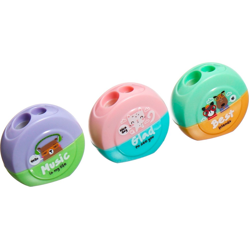 Точилка пластиковая MESHU "Best friends", 2 отверстия, ассорти MS_54743