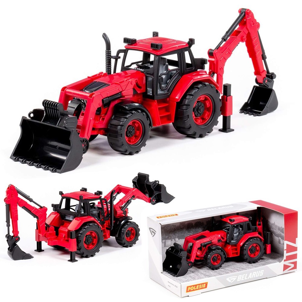Трактор BELARUS с экскаватором и погрузчиком от ТМ «Полесье» изготовлен из высококачественного, безопасного пластика.