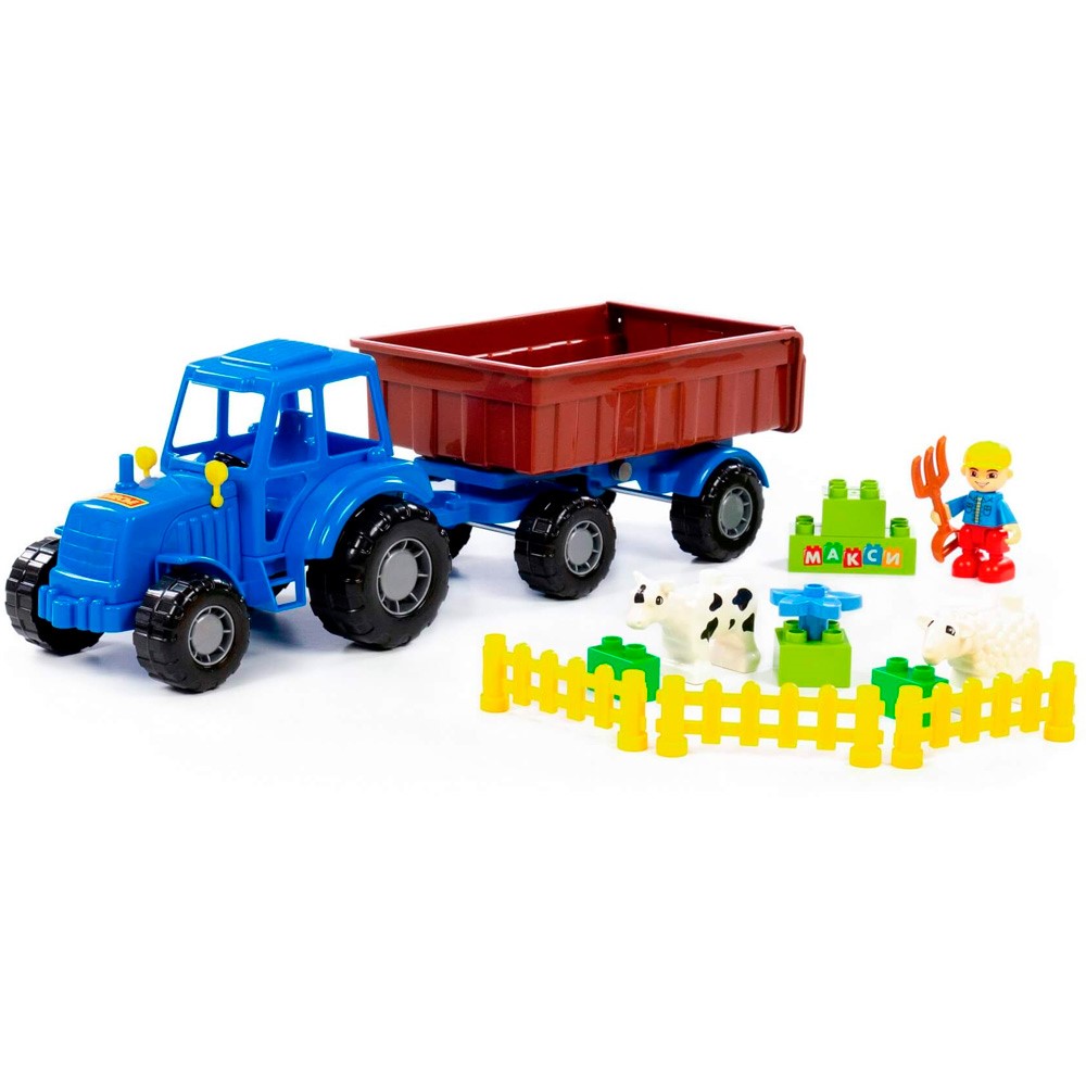 Трактор Мастер синий с прицепом №1 + конструктор Макси 13 элементов (в сеточке) 02260 П-Е /6/