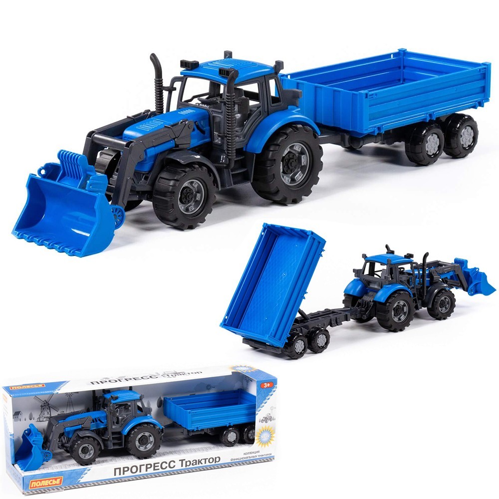 Трактор Прогресс с бортовым прицепом и ковшом инерционный синий (в коробке) 91819 П-Е /8/