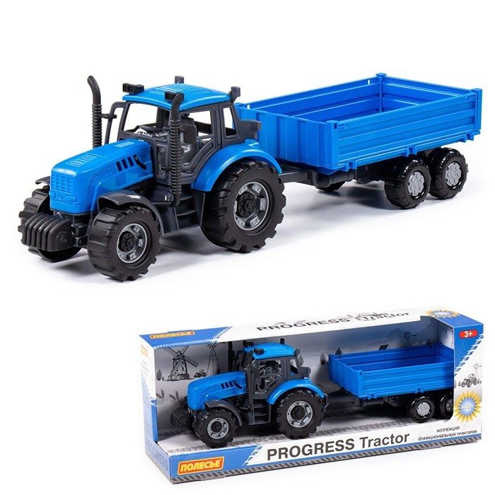 Игрушечный трактор "Прогресс" с бортовым прицепом инерционный от бренда «Полесье» обязательно понравится маленьким автолюбителям и пополнит игрушечный гараж.