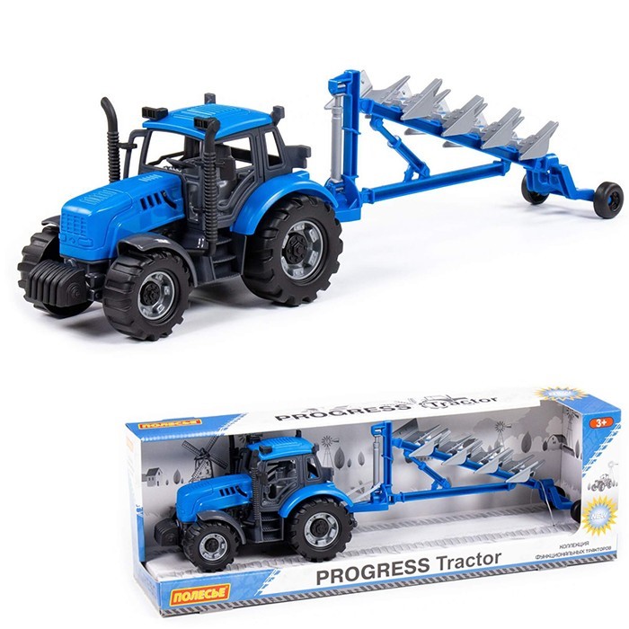 Трактор "Прогресс" с плугом инерционный синий в коробке 91291 П-Е /8/