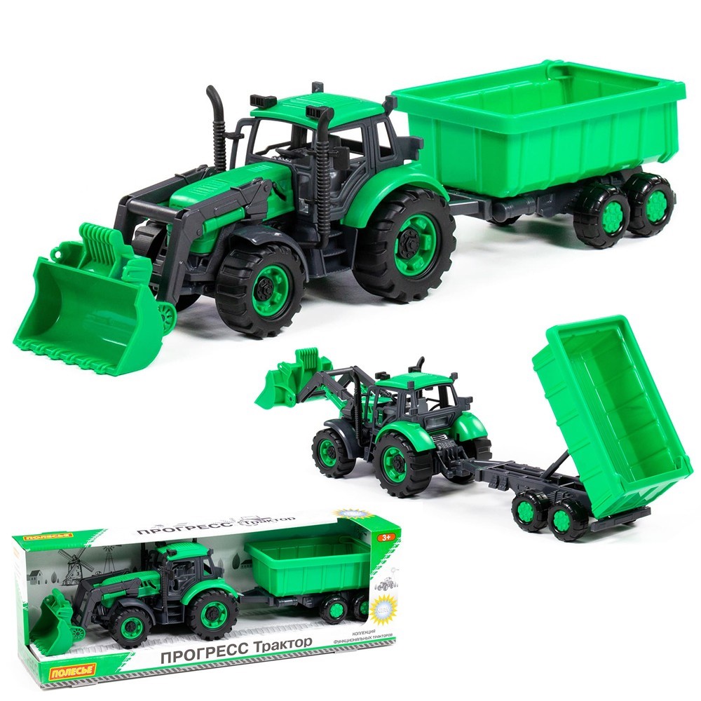 Трактор «Прогресс» с прицепом и ковшом – это функциональная игрушка от фабрики «Полесье», которая обязательно понравится мальчишкам и всем любителям автотехники.