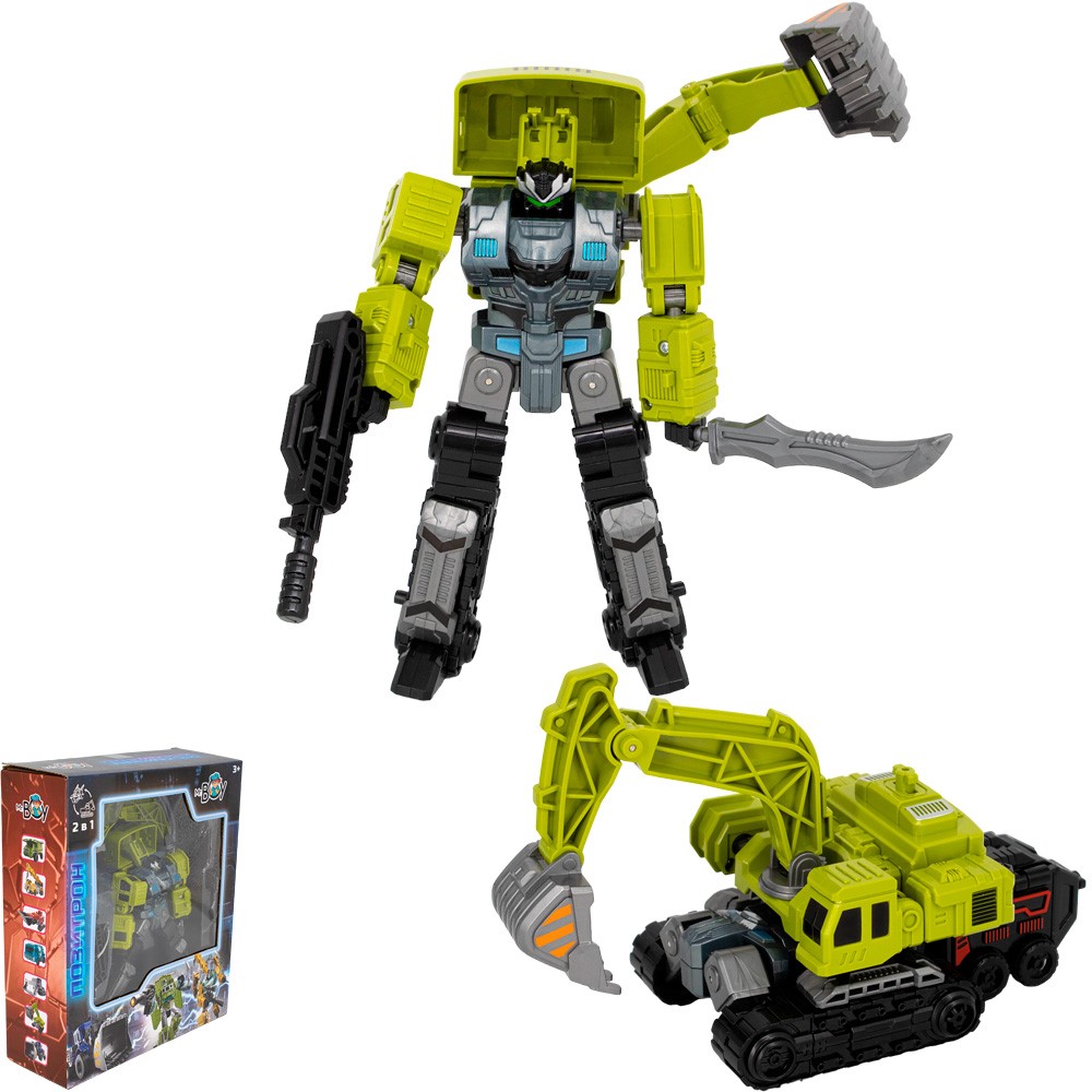 Комплектация: робот-трансформер – 1 шт., игровые аксессуары (2 меча 8 х 1 см, автомат 8,5 х 3,5 см, 2 детали для робота) – 1 шт., инструкция – 1 шт.