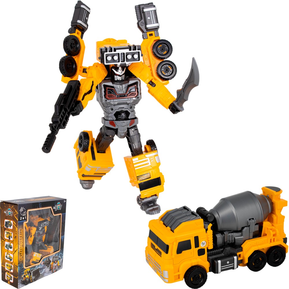 Комплектация: робот-трансформер – 1 шт., игровые аксессуары (меч 8 х 1 см, автомат 8,5 х 3,5 см, деталь для робота) – 1 шт., инструкция – 1 шт.
