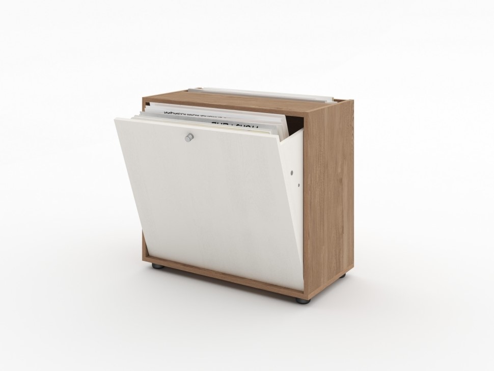 Верхняя полка подходит для размещения элементов декора, комнатных растений или предметов частого использования. Закрытое отделение разделено на две секции. Благодаря этому можно сортировать материалы по форматам или темам, а также быстро находить нужные плакаты.