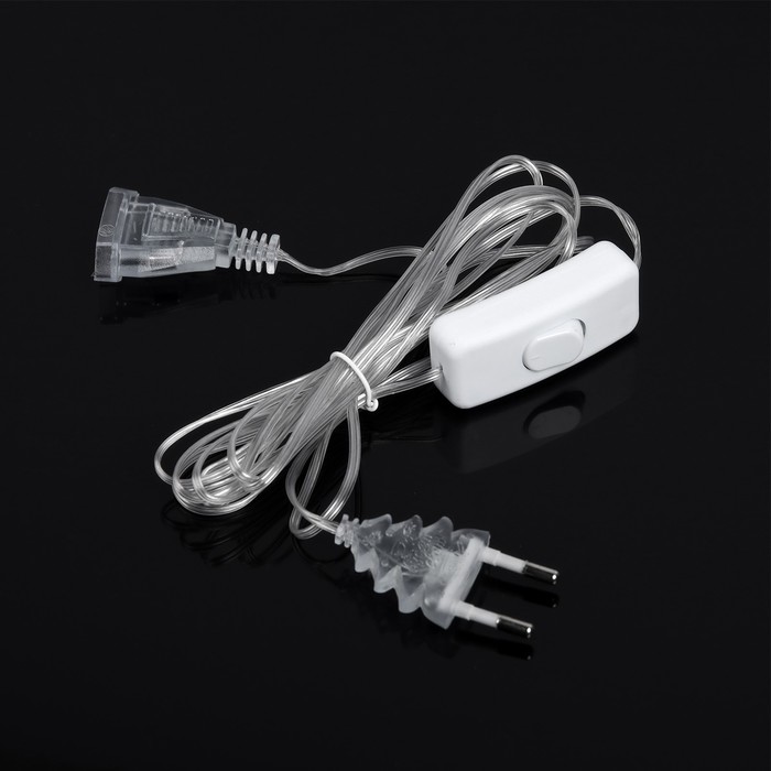 Удлинитель для комнатных гирлянд с выключателем, 3 м, прозрачная нить, УМС-вилка