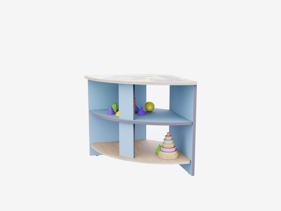 Угловое место для хранения идеально подходит для организации пространства в углах комнаты, эффективно используя каждый сантиметр и обеспечивая удобный доступ к материалам и игрушкам.