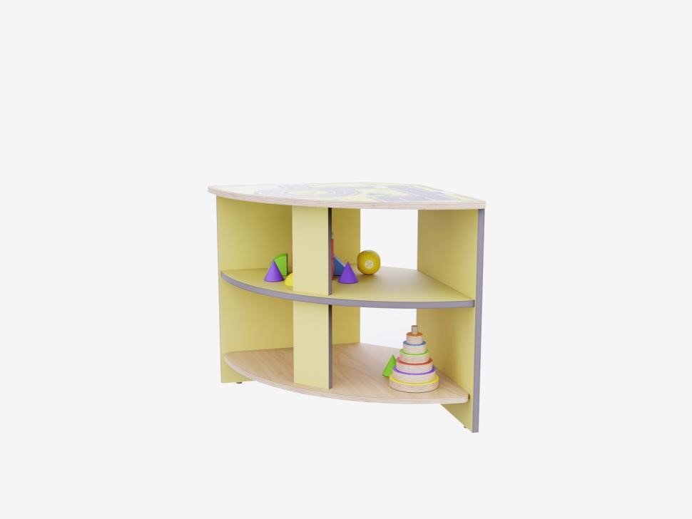 Угловое место для хранения идеально подходит для организации пространства в углах комнаты, эффективно используя каждый сантиметр и обеспечивая удобный доступ к материалам и игрушкам.
