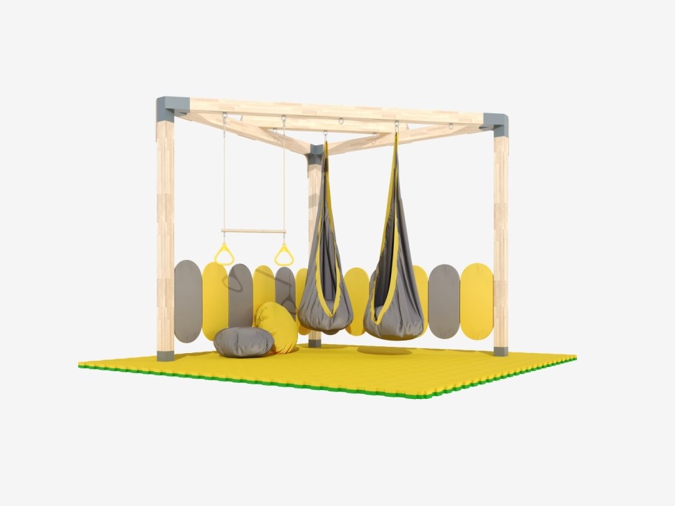 Комплект спортивного игрового оборудования для детей с нарушениями обработки сенсорной информации от органов чувств (нарушениями сенсомоторной интеграции). Занятия с комплексом помогают исправлять дисфункции проприоцептивной, вестибулярной и тактильной чувствительности у детей. Подходит как для работы коррекционных педагогов и реабилитологов, так и для общего физического развития.