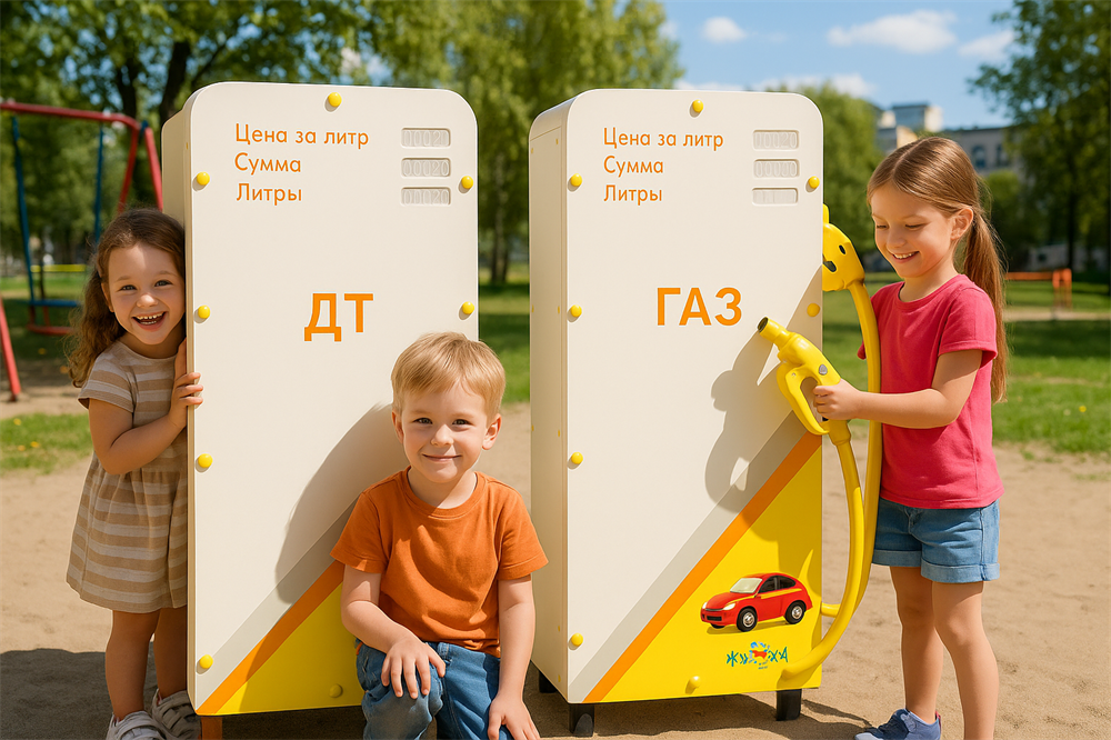 Реалистичный игровой процесс#nbsp;– 4 шланга с пистолетами создают полное погружение в роль заправщика, развивая воображение детей. Обучающая панель#nbsp;– яркие изображения#nbsp;с выбором топлива, ценой, литрами и суммой знакомит с основами счета и простейшими расчетами. Развитие социальных навыков#nbsp;– коллективная игра в "автозаправку" учит детей взаимодействию и коммуникации. Улучшение моторики#nbsp;– манипуляции с пистолетами и шлангами тренируют ловкость и координацию движений. Нужно изменить дизайн? Мы готовы! Обратитесь к Вашему менеджеру на индивидуальную разработку