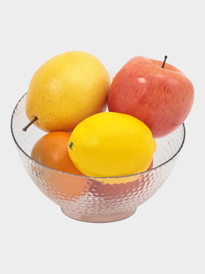 Эта фигурная фруктовница – не просто емкость для хранения. Ее рельефная текстура и кристально чистый пластик создают эффектный визуальный акцент, привлекающий внимание к содержимому. Она станет практичным украшением для кухни или столовой. Ваза для фруктов пластиковая - это современный подход к классической сервировке.