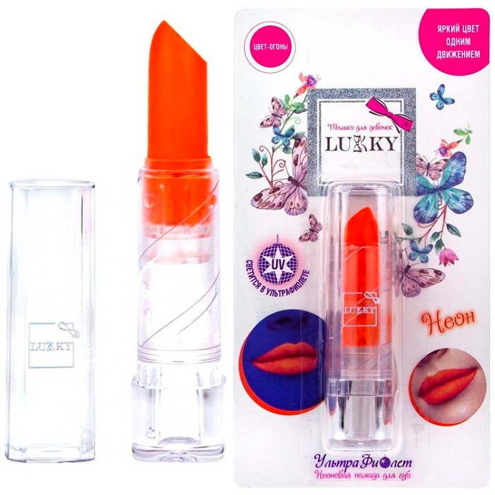 Неоновая помада для губ Lukky УльтраФиолет создана специально для девочек, которые любят красить губы, подражая старшим.