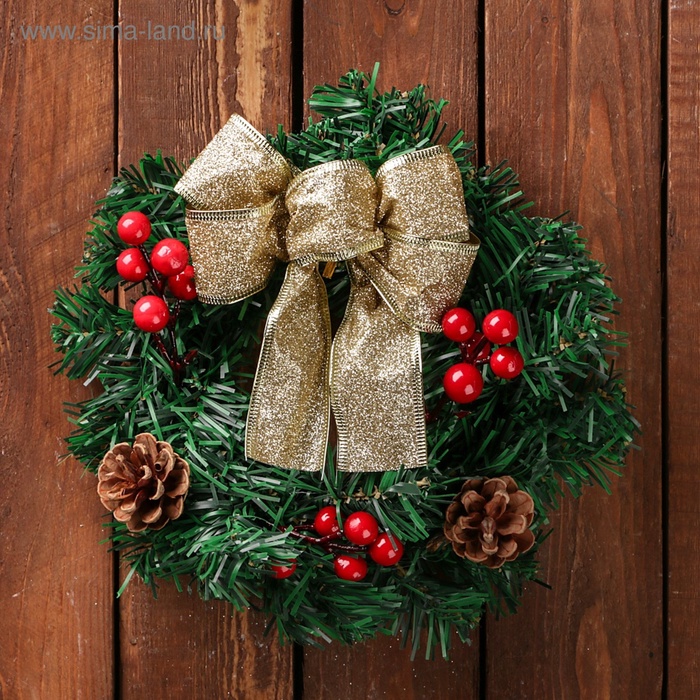 Венок новогодний d=20 см «Зимнее волшебство. Бантик», с ягодами и шишками