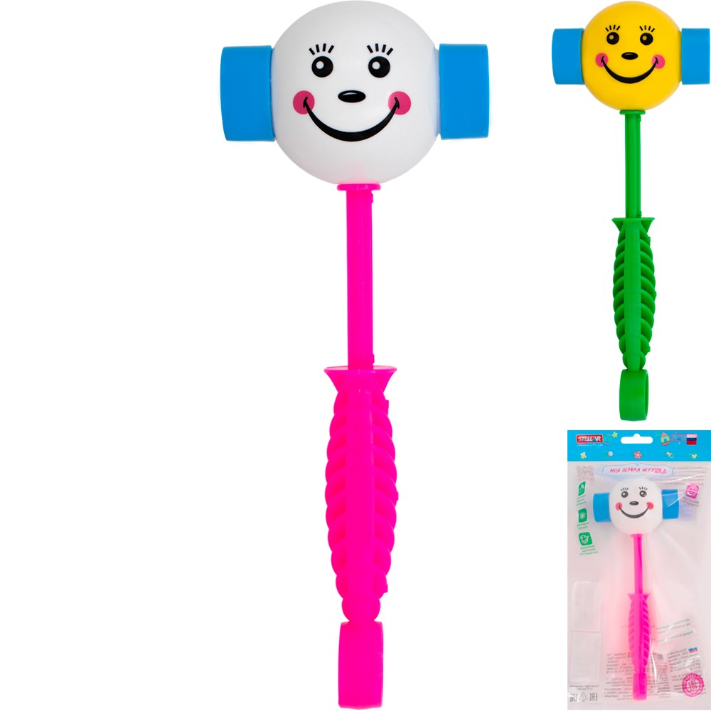 Оригинальная яркая игрушка предназначена для активных игр и развития мелкой моторики и координации движений. Яркая расцветка развлечет малыша и привлечет его внимание. Игрушка учит пониманию причинно-следственной связи, помогает тренировать моторику и координацию движений, восприятие формы и цвета. Веселый молоточек издает забавные звуки. Молоточек крякает, если трясти его вправо-влево. Можно стучать, тоже будет крякать. Рифленая ручка обеспечивает надежный захват. Игрушка привлекает внимание и способствует развитию тактильного, зрительного и слухового восприятия малыша. Игрушки сделаны из прочного и безопасного материала.