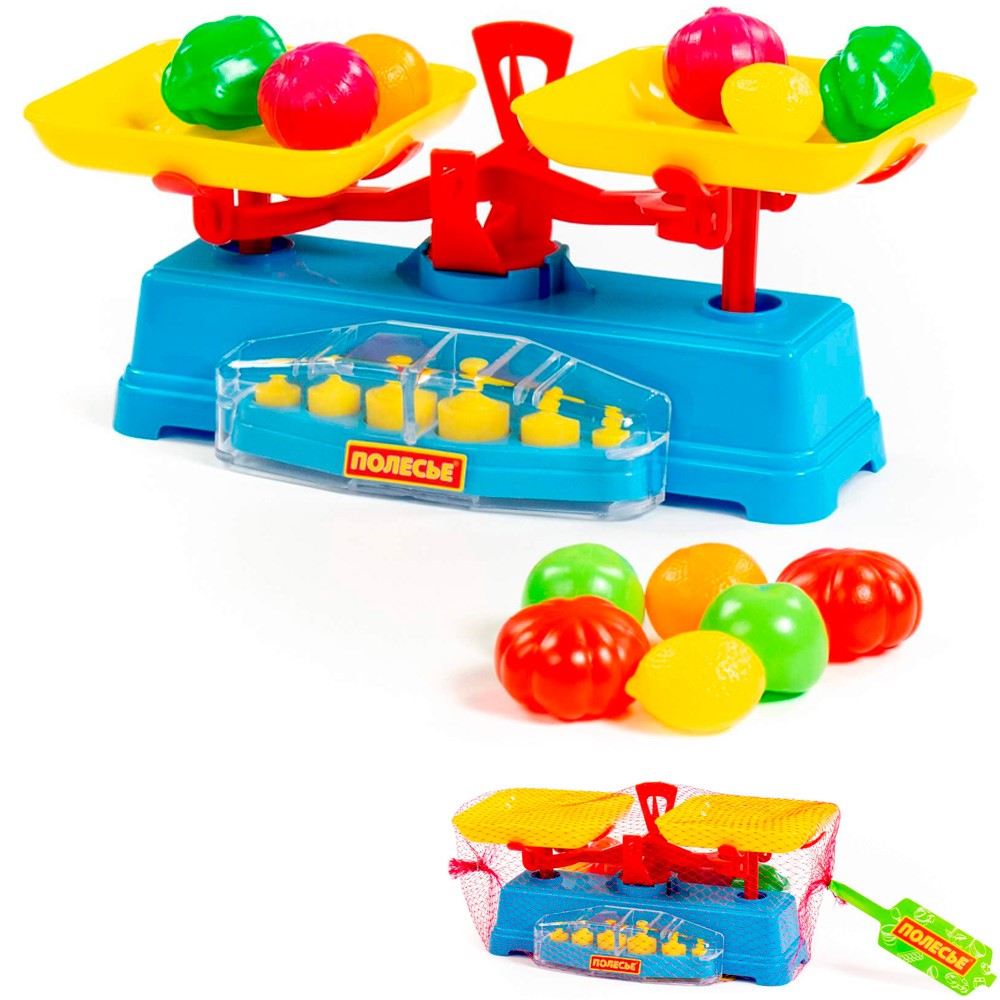 Комплектация: весы, гири, набор продуктов