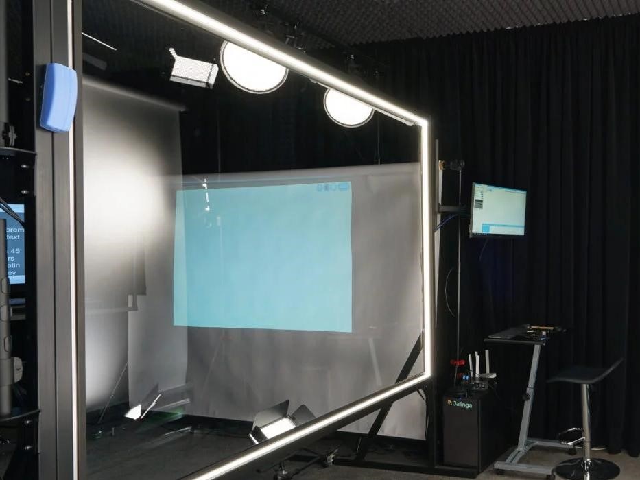 Во время записи видео спикер может видеть свой материал на экране проектора, а также на боковых экранах, так создается ощущение "нахождения" внутри презентации.