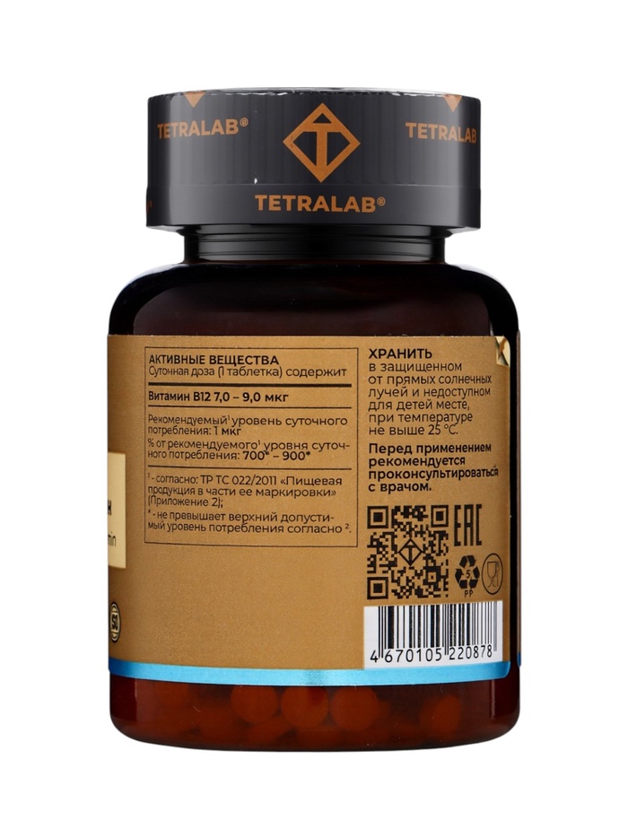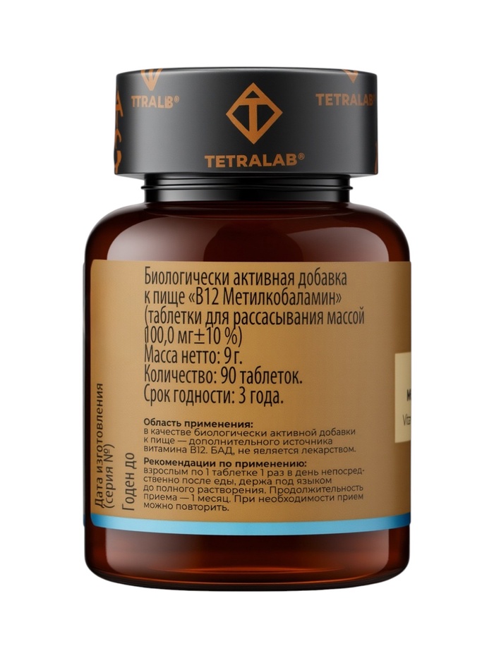 Витамин В12 Метилкобаламин TETRALAB, поддержка нервной системы, энергии и обмена веществ, 90 таблеток