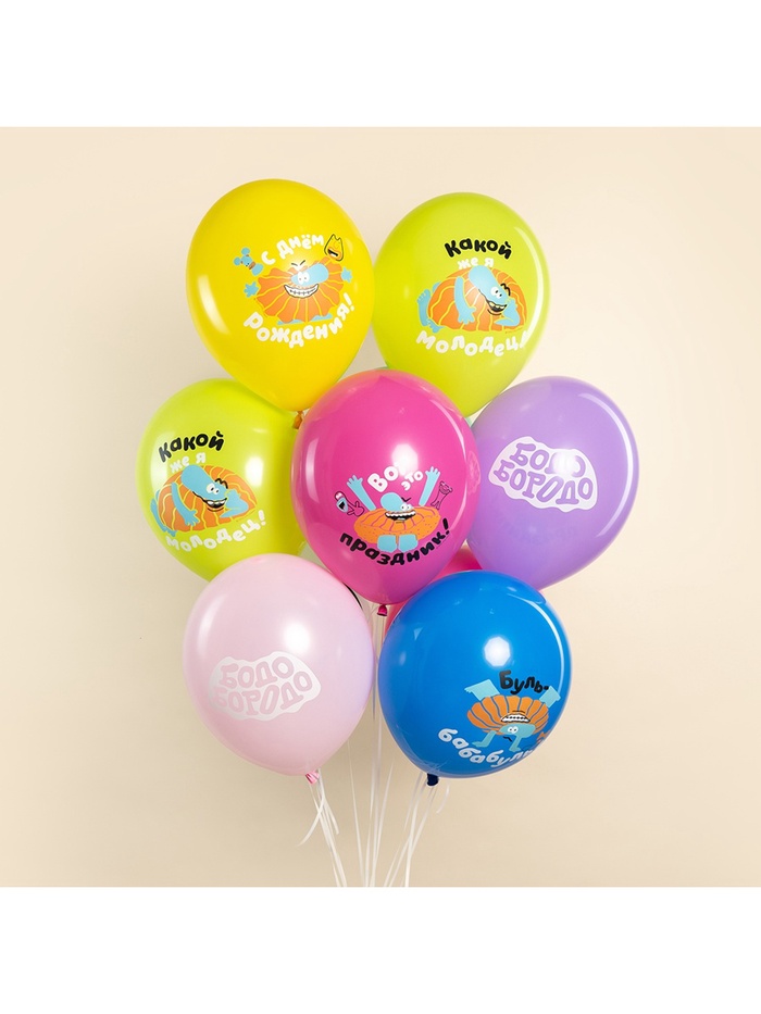 Воздушные шары латексные 12" «Бодо Бородо, С Днем Рождения», 25 шт., МИКС