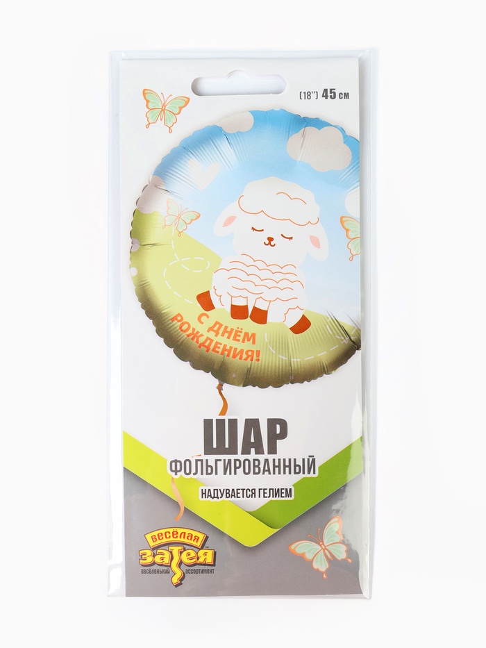 Воздушный шар фольгированный 18" «Белая милая овечка» (комплект 2 шт)