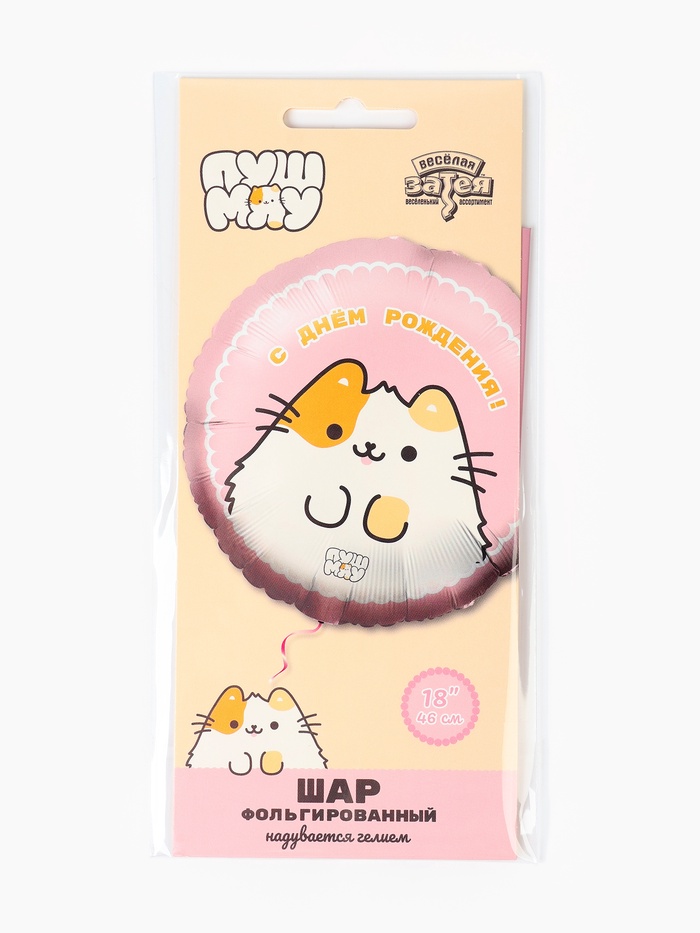 Воздушный шар фольгированный 18" «ДР ПушМяу» (комплект 2 шт)