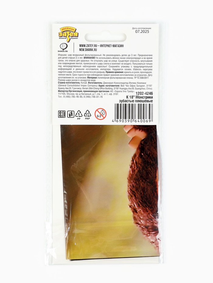 Воздушный шар фольгированный 18" «Монстрики плюшевые», 2-сторонний (комплект 5 шт)