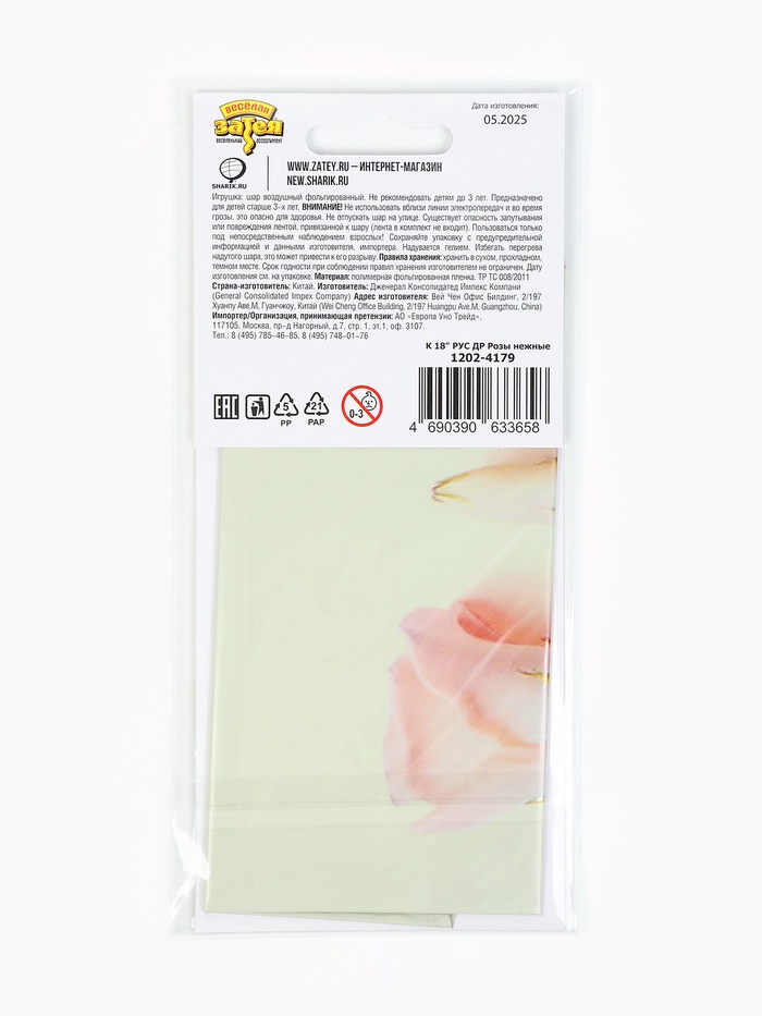 Воздушный шар фольгированный 18" «Нежные розы, с ДР» (комплект 2 шт)