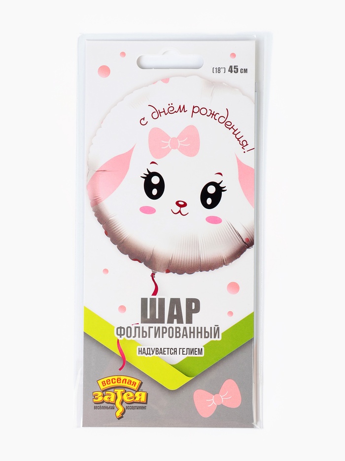 Воздушный шар фольгированный 18" «Зайка с розовым бантом» (комплект 2 шт)