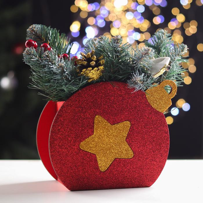 Ящик подарочный деревянный блестящий "Шар" звезда, красный 18,8х9,8х15,5 см