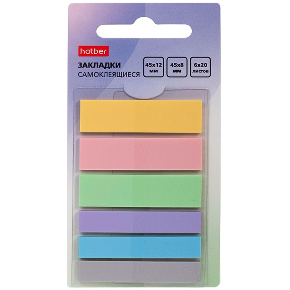 Закладки NEWtone прямоугольные Самоклеящ. пластик 45х12мм и 45х8мм 6 цв. 20л 090307