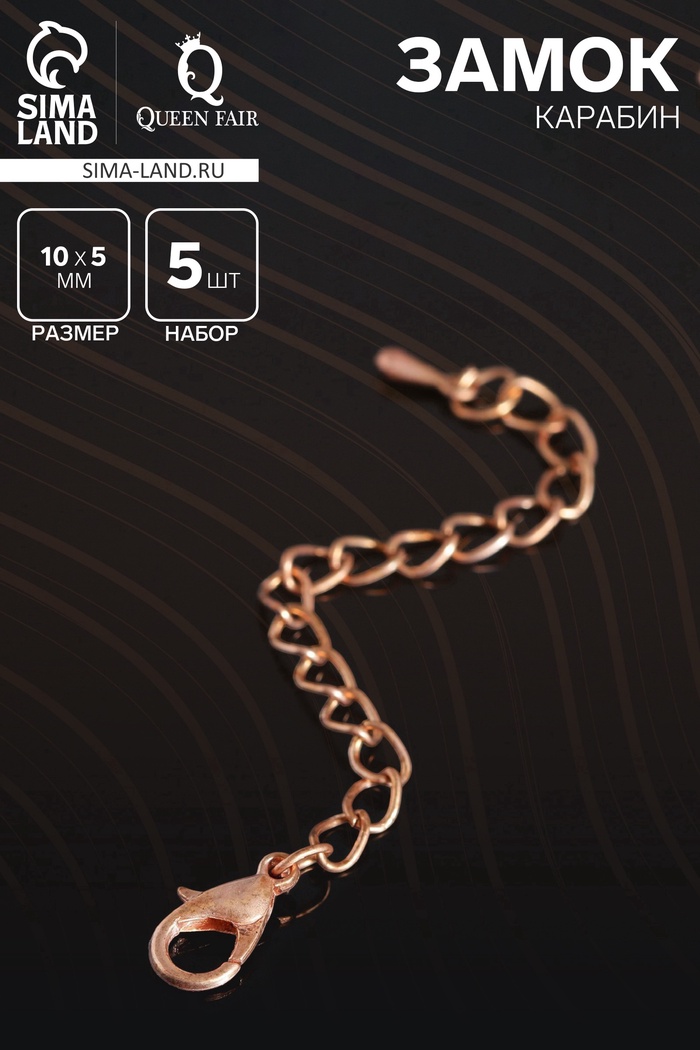 Замок карабин 5 шт. 10×5 мм, с удлинительной цепочкой 7.5 см, цвет медный