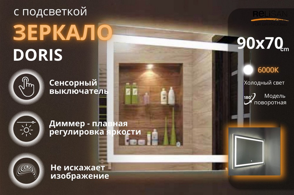 Зеркало Relisan DORIS 900х700 с подсветкой