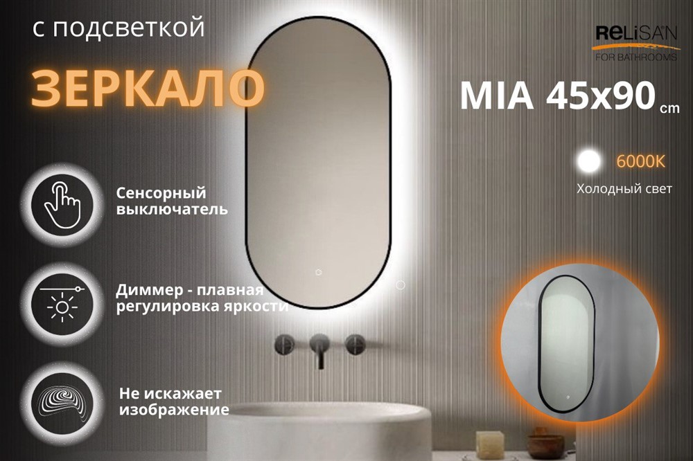 Зеркало Relisan MIA BLACK 450x900 с подсветкой